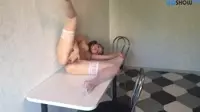She Fingers Her Wet Pussy On All Fours On The Table